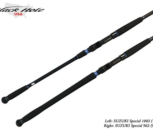 Black Hole USA Suzuki Special Surf Spinning Rods are perfect for open beach fishing. These lightweight rods are designed for throwing lighter lures, bucktails and tins. Weighing under 10 ozs, the Suzuki Special excels when targeting albies, striped bass, bluefish and snook. What’s special about these rods other than the weight is that you can take an SP Minnow or a Hydro Minnow and absolutely launch it! The actions on the rods are great and they are fun to fish even when you catch a schoolie. This is not an overpowering rod that is going to just power in small fish. You are going to have a lot of fun fighting whatever ends up biting the end of your line. Combine this with a really great price and you’ve got a rod that every surfcaster should add to his arsenal. Fishing this rod is a really enjoyable experience! If you’re looking to have a better experience on the beach, add aย Black Hole USA Suzuki Special Surf Spinning Rod to your arsenal.