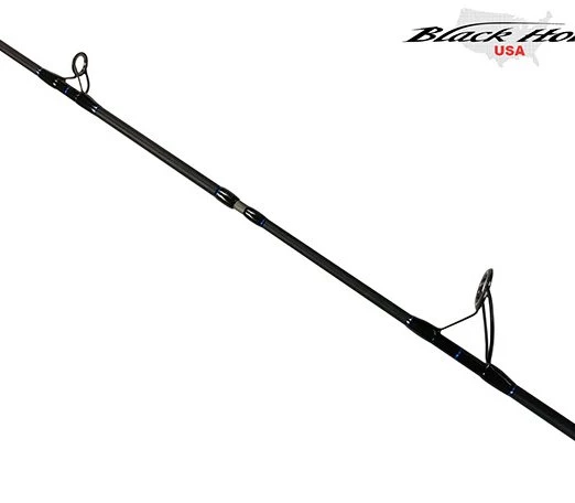 Black Hole USA Suzuki Special Surf Spinning Rods are available in 9’6″ and 10′ models. They are black with blue accents. We like pairing it with a Van Staal VR50, bย chameleon finish will turn heads on the beach. They are 2-piece with a 50/50 split.